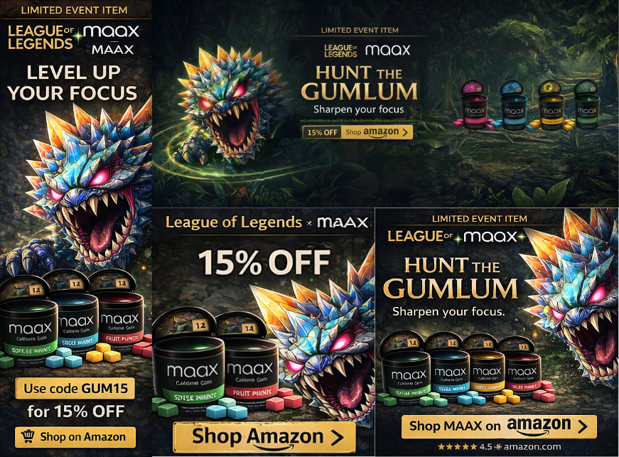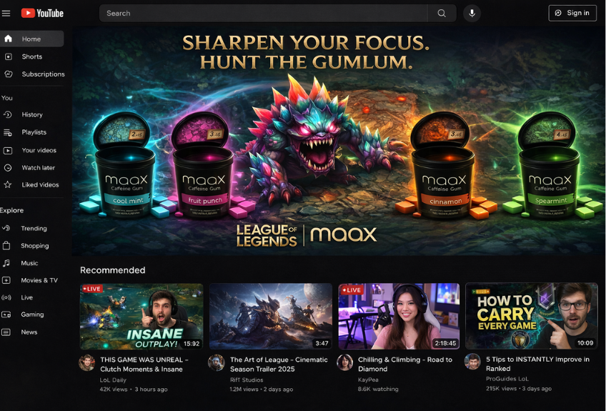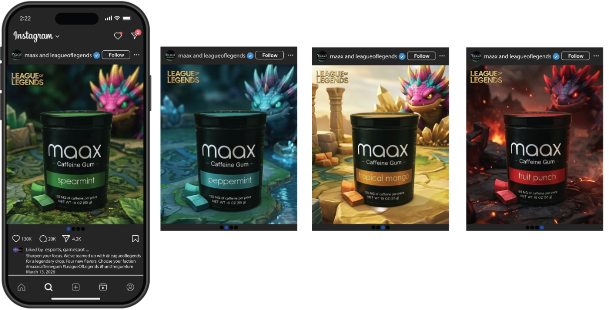 MAAX partners with League of Legends to create “Hunt the Gumlum,” elevating caffeine gum into a gameplay mechanic that delivers instant focus and keeps gamers locked in. Each flavour unlocks a piece of the Rift map—collect all four to find Gumlum’s spawn and be the first to secure the buff.