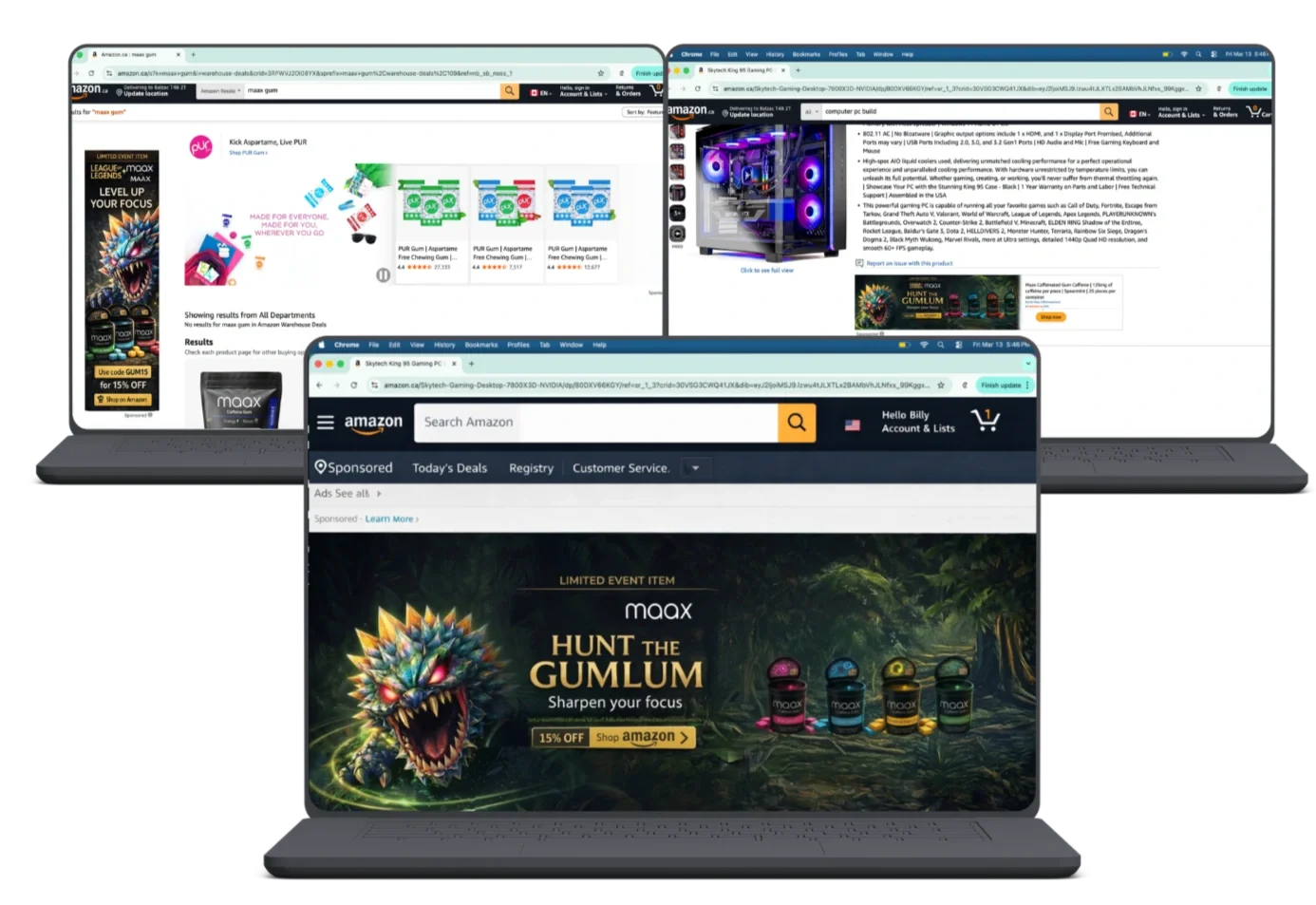Extending beyond Amazon, MAAX reaches gamers on Youtube, Twitch and Socials (Instagram and Tiktok), embedding the campaign into the content they watch and the moments they play.